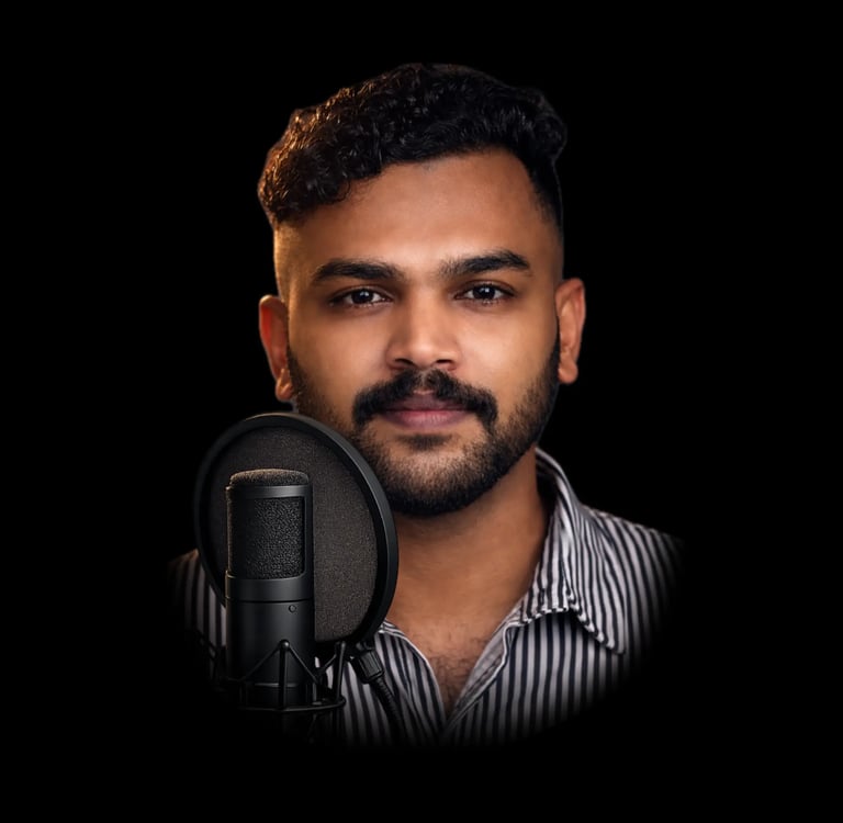 നിങ്ങളുടെ പ്രോജക്റ്റുകൾക്ക് ജീവൻ നൽകാൻ അർപ്പണബോധത്തോടെ പ്രവർത്തിക്കുന്ന ഒരു പ്രൊഫഷണൽ വോയ്സ് ഓവർ ആർട്ടിസ്റ്റാണ് ഞാൻ. ടെലിവിഷൻ - റേഡിയോ പരസ്യങ്ങൾ മുതൽ ഡോക്യുമെന്ററികൾക്കും ഫീച്ചർ ഫിലിമുകൾക്കും വരെ, നിങ്ങളുടെ ആവശ്യങ്ങൾക്കനുസരിച്ചുള്ള മികച്ച വോയ്സ് ഓവർ സേവനങ്ങൾ ഞാൻ നൽകുന്നു. വ്യക്തമായ മലയാളം ഉച്ചാരണവും ആകർഷകമായ അവതരണ ശൈലിയും വഴി നിങ്ങളുടെ ബ്രാൻഡിനെ ജനങ്ങളിലേക്ക് എത്തിക്കാൻ ഞാൻ സഹായിക്കുന്നു.