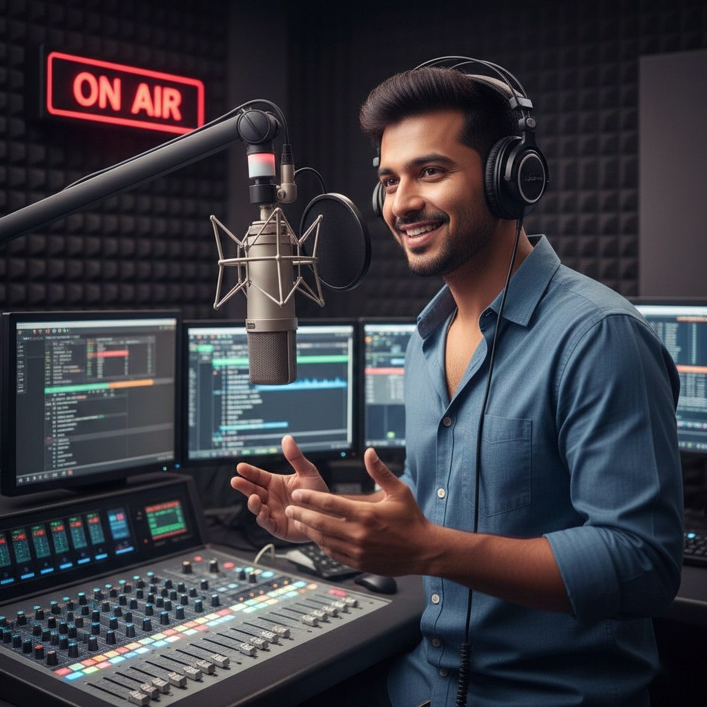 ചോദ്യം: നല്ല ശബ്ദം ഉള്ളവർക്ക് മാത്രമേ ഈ കോഴ്സിൽ ചേരാൻ കഴിയൂ? മറുപടി: തീർച്ചയായും അല്ല! ശരിയായ വോയ്സ് മോഡുലേഷൻ (Voice Modulation) പരിശീലനത്തിലൂടെ ആർക്കും സ്വന്തം ശബ്ദത്തെ പ്രൊഫഷണലായി മാറ്റിയെടുക്കാൻ സാധിക്കും.